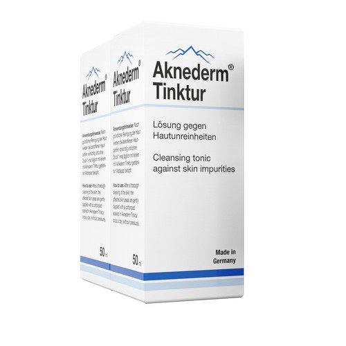 Idealerweise verwenden Sie im Anschluss die Aknederm Lotion und die Aknederm Salbe oder Creme. Besonders bewährt hat sich die Kombination der Aknederm Salbe mit der Tinktur. Die Aknederm Tinktur und die Salbe können Sie auch im Set in der Apotheke erwerben.