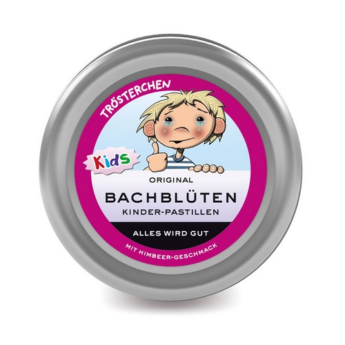 Bachblüten Kinder Pastillen mit Süßungsmitteln. Aus Akaziensaft (Gummi Arabicum) mit Auszügen aus original Bachblüten und Himbeere-Geschmack. Die ausgewählten Essenzen eignen sich für