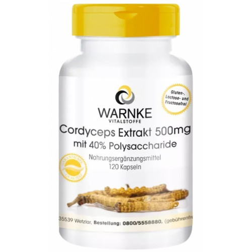 Dieses Cordyceps-Nahrungsergänzungsmittel von Warnke Vitalstoffe enthält einen standardisierten Cordyceps-Extrakt mit 40 % Polysacchariden. Pro Tagesdosis von 3 Kapseln sind das 1500 mg Cordyceps-Extrakt mit 600 mg Polysacchariden.