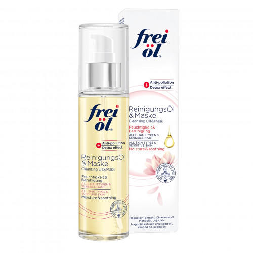 frei öl® ReinigungsÖl & Maske mit Anti-Pollution-Reinigung, entfernt 94% mehr Feinstaub* und hilft der Haut bei der Entgiftung bei Anwendung als Detox-Maske. Kein „grauer Schleier“ mehr, nur reiner und strahlender Teint.