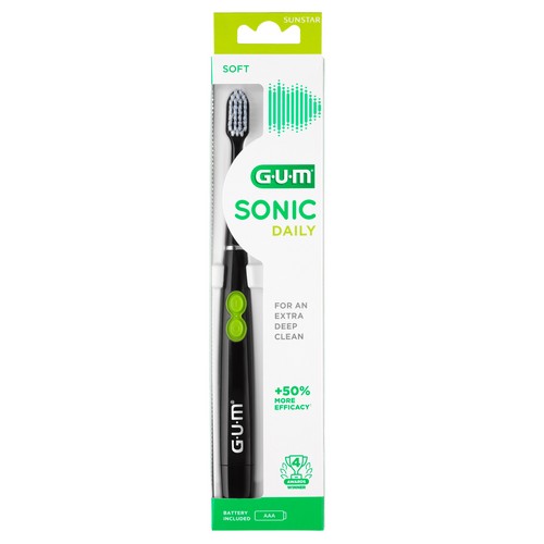 Gute tägliche Mundpflege ist wichtig, auch wenn Sie gesunde Zähne und gesundes Zahnfleisch haben. Beugen Sie Problemen der Mundgesundheit mit der GUM SONIC DAILY Schallzahnbürste vor. Diese innovative Zahnbürste vibriert mit 12.000 Schwingungen/Minute um Ihre Zähne sanft zu reinigen und Ihr Zahnfleisch zu stimulieren. Durch die extra Kraft der Vibration werden bessere Ergebnisse als mit einer herkömmlichen Handzahnbürste erreicht.