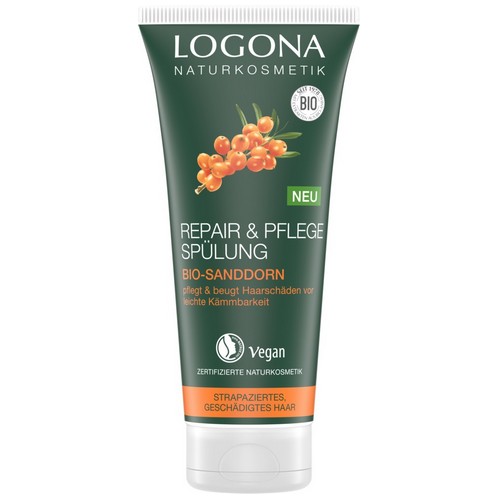 Die LOGONA REPAIR & PFLEGE SPÜLUNG pflegt und beugt gezielt Haarschäden und Spliss vor . Die vegane Repair & Pflege-Formel natürlichen Ursprungs mit Bio-Sanddorn glättet die Haarstruktur und bekämpft Frizz. Für leichte Kämmbarkeit ohne zu beschweren. Zur tiefenwirksamen Intensiv-Pflege: Repair & Pflege Kur Bio-Sanddorn.