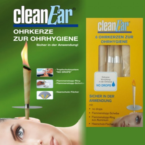 CleanEar® Ohrkerzen, hergestellt auf Basis von Baumwolle, Stearin und Paraffin, erlauben bei regelmäßiger Anwendung eine angenehme Reinigung des Gehörganges.