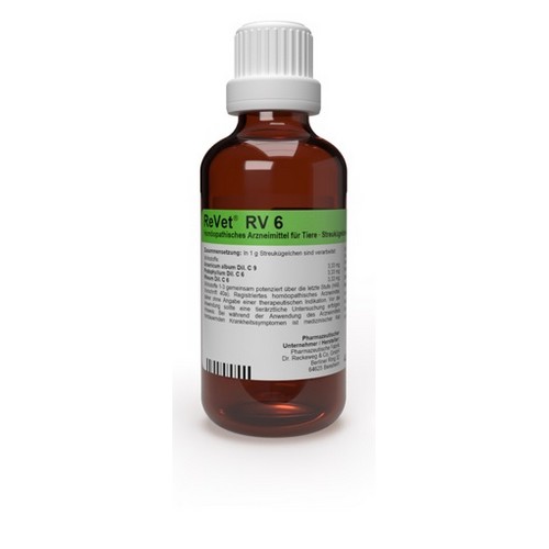 ReVet® RV 6 - oral - (Globuli) wird in etwas Wasser aufgelöst eingegeben. Die Globuli dürfen auch aufgelöst mit etwas Nahrung oder Tränke verabreicht werden. Die Häufigkeit und Dauer der Anwendung richtet sich in erster Linie nach den Grundsätzen der Homöopathie, wonach bei beginnender Besserung seltener dosiert wird und nach Erreichen des Normalzustandes zunächst keine weitere Anwendung erforderlich ist.