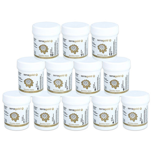 Alle 12 Schüssler Salze Basismittel im Set zum günstigen Sparpreis von 6.40€ pro 400 Tabletten.