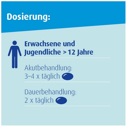 - Zur Weiter- und Dauerbehandlung reicht im Allgemeinen 2 x tgl. 1 Kapsel aus.
