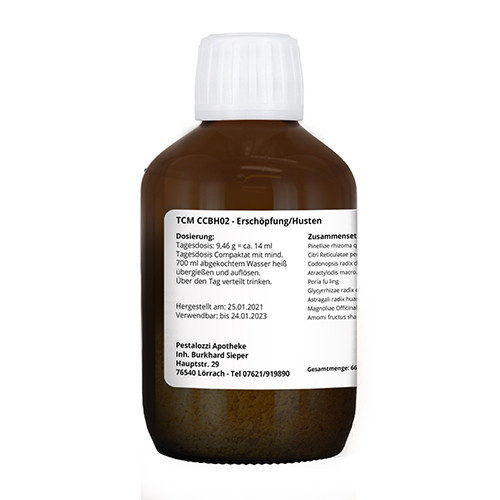 Aufgrund des Interesses an TCM werden chinesischen Kräuterarzneien in Apotheken seit Jahrzehnten auch in Europa hergestellt. CCBH02 ist ein apothekenpflichtiges Rezepturarzneimittel, welches als Rezeptur im Labor der Pestalozzi Apotheke für Sie hergestellt wird. Dabei wird das Verfahren nach CompaSan Compaktate verwendet.